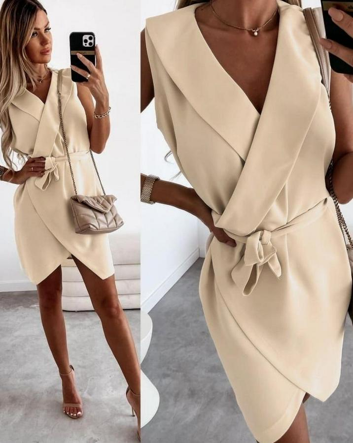 AnasayfaTüm ÜrünlerElbiseKruvaze Yaka Kuşaklı Krep Kumaş Elbise
