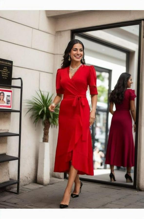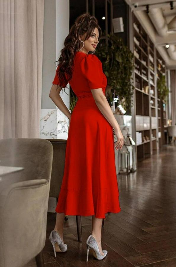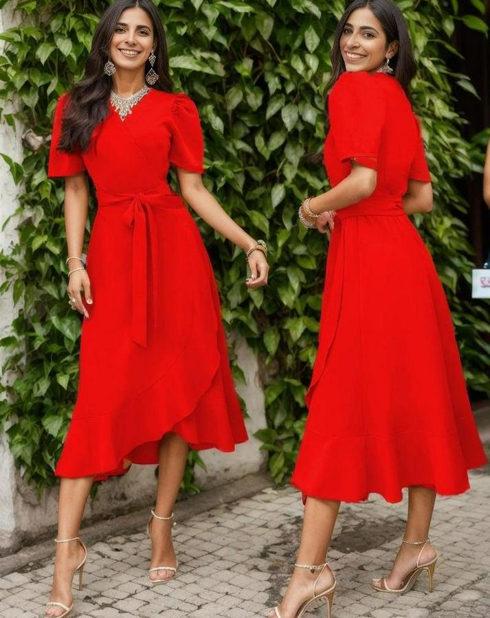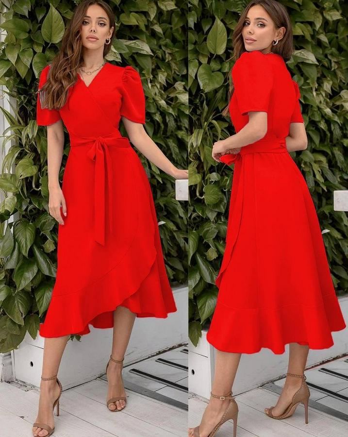 AnasayfaTüm ÜrünlerElbiseKruvaze Yaka Midi Boy Kuşaklı Krep Elbise 120 Cm