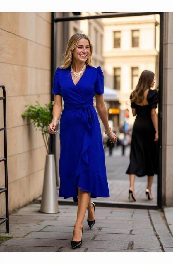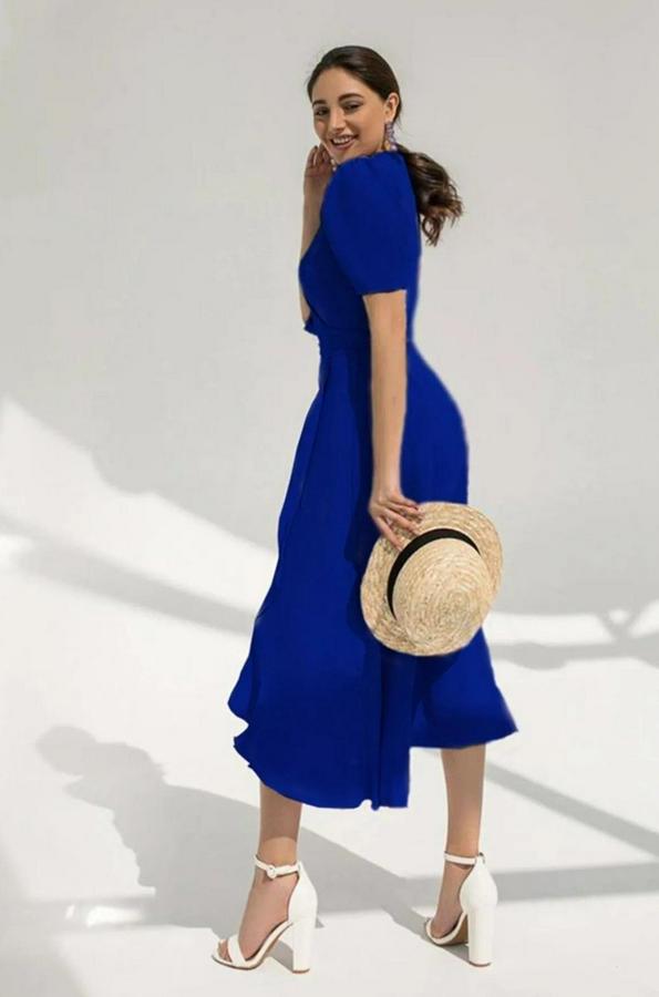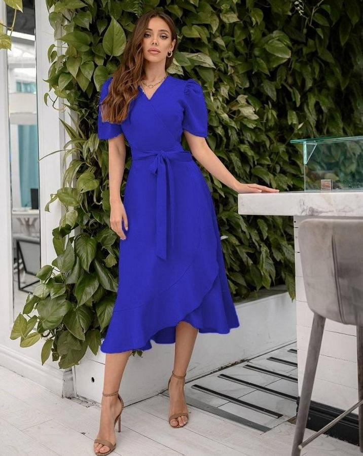 AnasayfaTüm ÜrünlerElbiseKruvaze Yaka Midi Boy Kuşaklı Krep Elbise 120 Cm