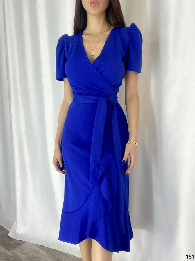 Kadın Kruvaze Yaka Midi Boy Kuşaklı Krep Elbise 120 Cm