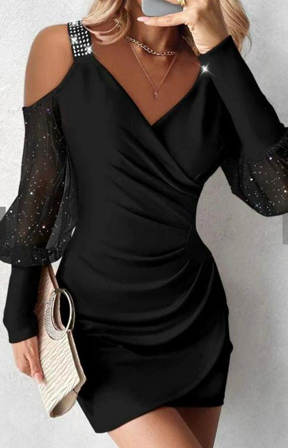AnasayfaTüm ÜrünlerElbiseKruvaze Yaka Omuz Ve Sırt Dekolteli Taş Detay Mini Elbise