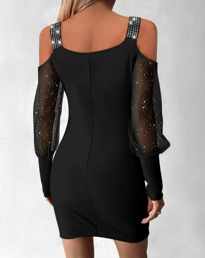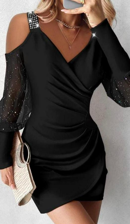 Kruvaze Yaka Omuz Ve Sırt Dekolteli Taş Detay Mini Elbise