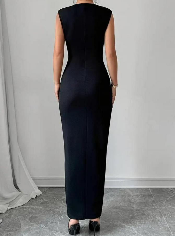 AnasayfaTüm ÜrünlerElbiseKruvaze Yakalı Yandan Düğmeli Yırtmaç Detaylı Uzun Ithal Krep Elbise