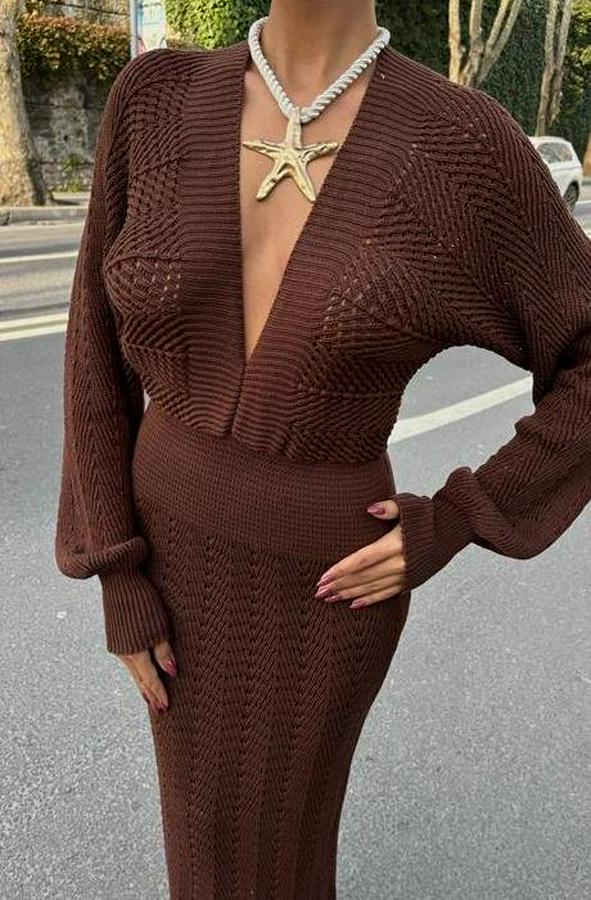 AnasayfaTüm ÜrünlerElbiseLaura Derin Dekolte Kroşe Elbise 2712-0025