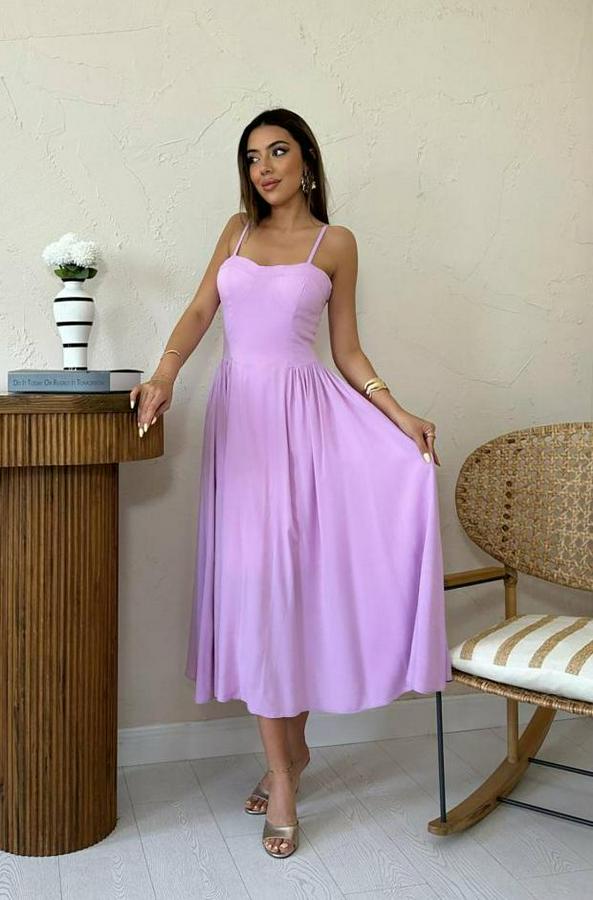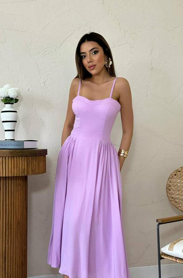 AnasayfaTüm ÜrünlerElbiseLila Göğüs Kuplu Uzun Büzgülü Elbise
