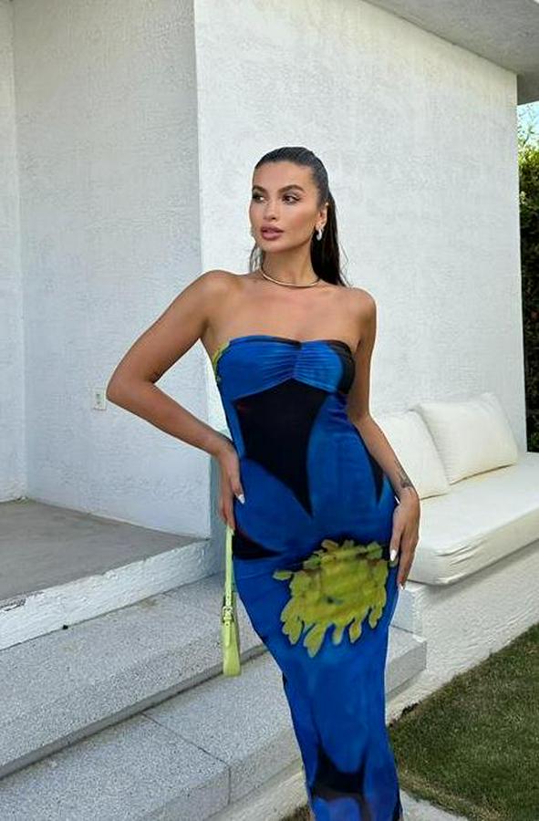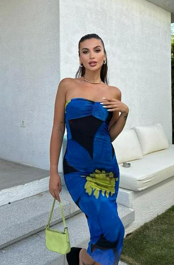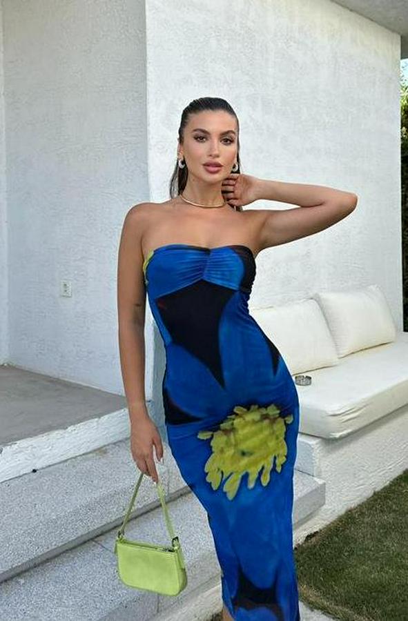 AnasayfaTüm ÜrünlerElbiseMarcella Desenli Straplez Elbise 2574-08