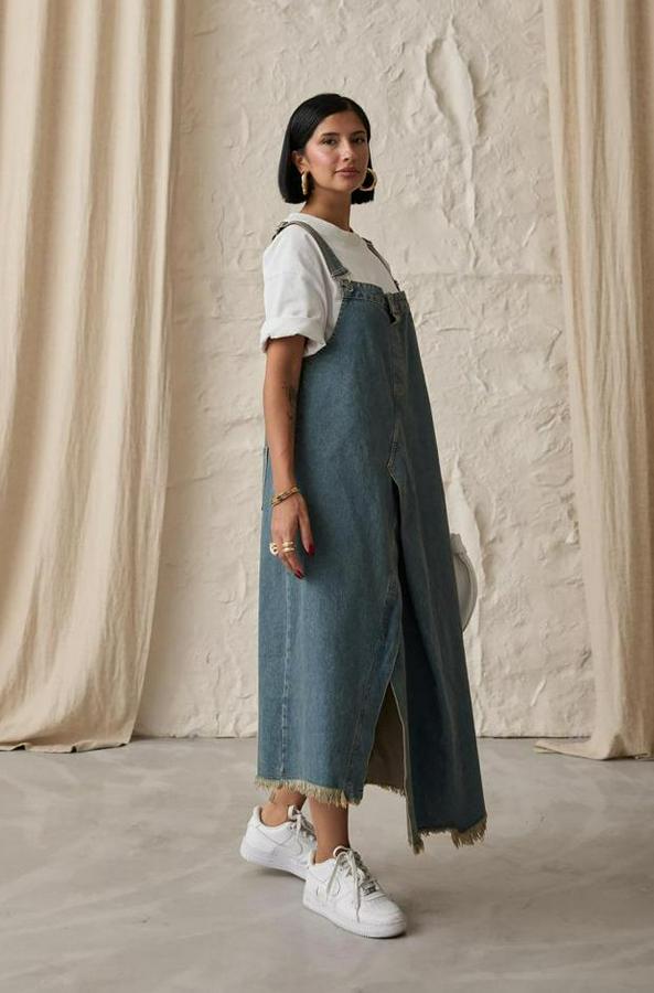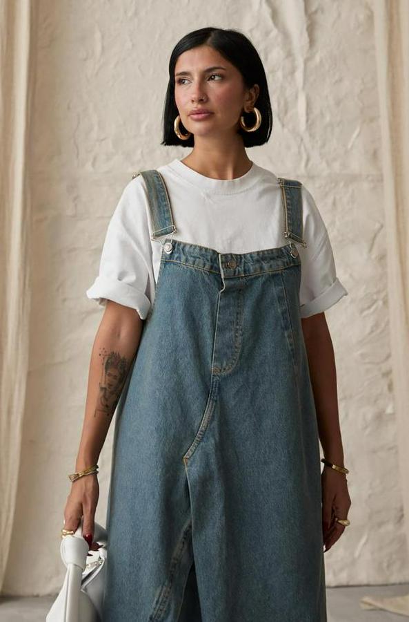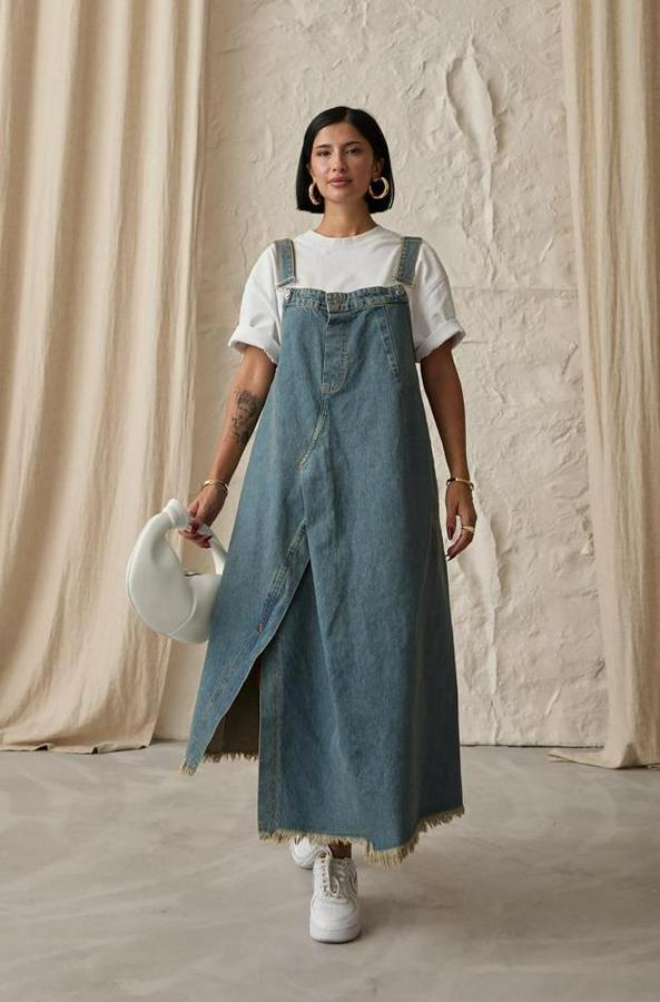 AnasayfaTüm ÜrünlerElbiseMavi Askılı Düğmeli Kot Elbise