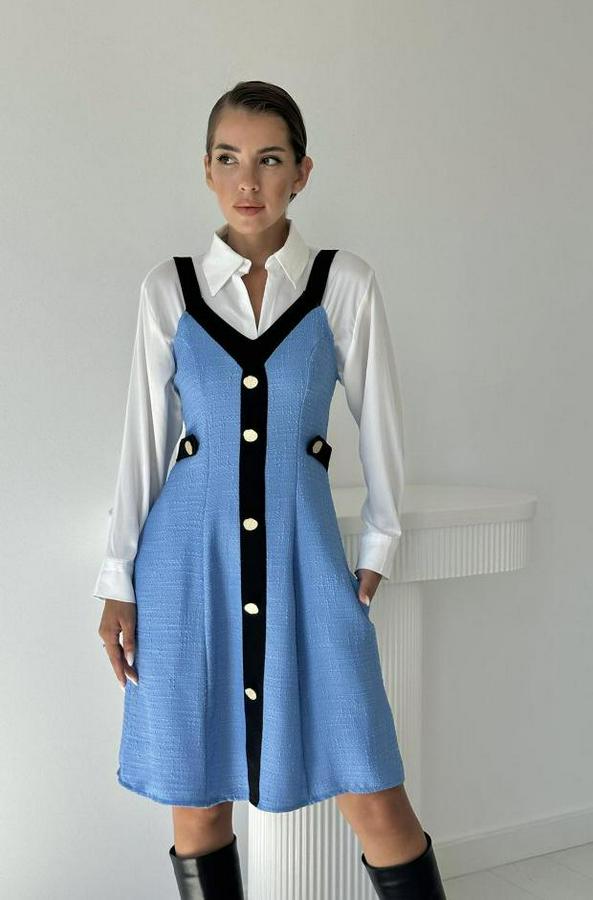 AnasayfaTüm ÜrünlerElbiseMavi Siyah Süs Cepli Askılı Elbise