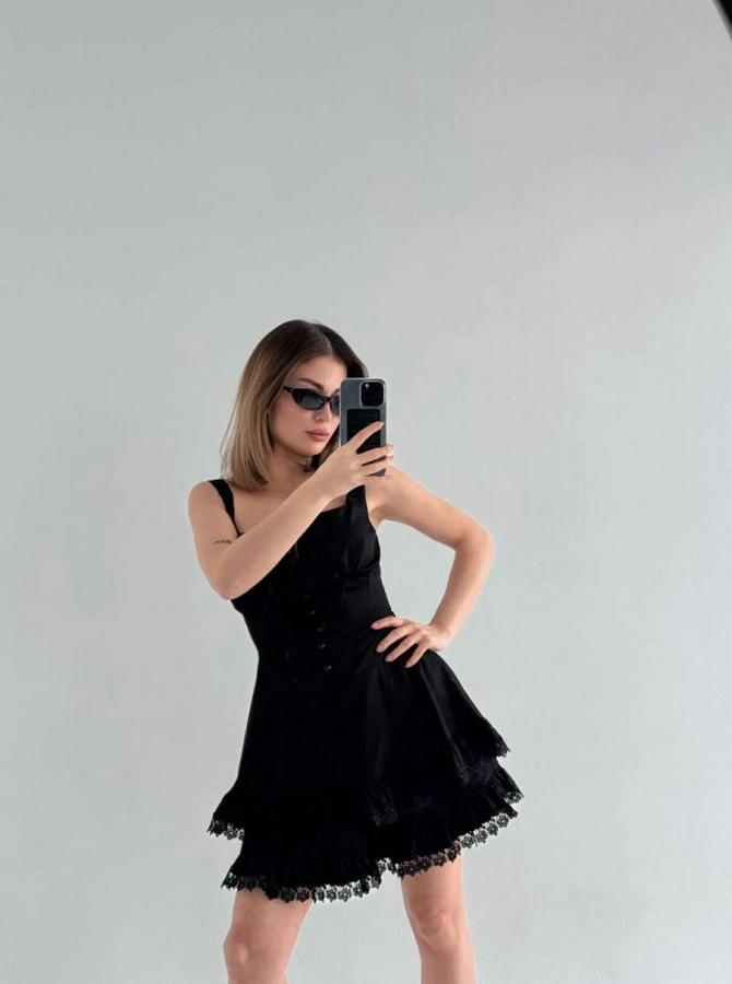 Mini Askılı Elbise - Siyah