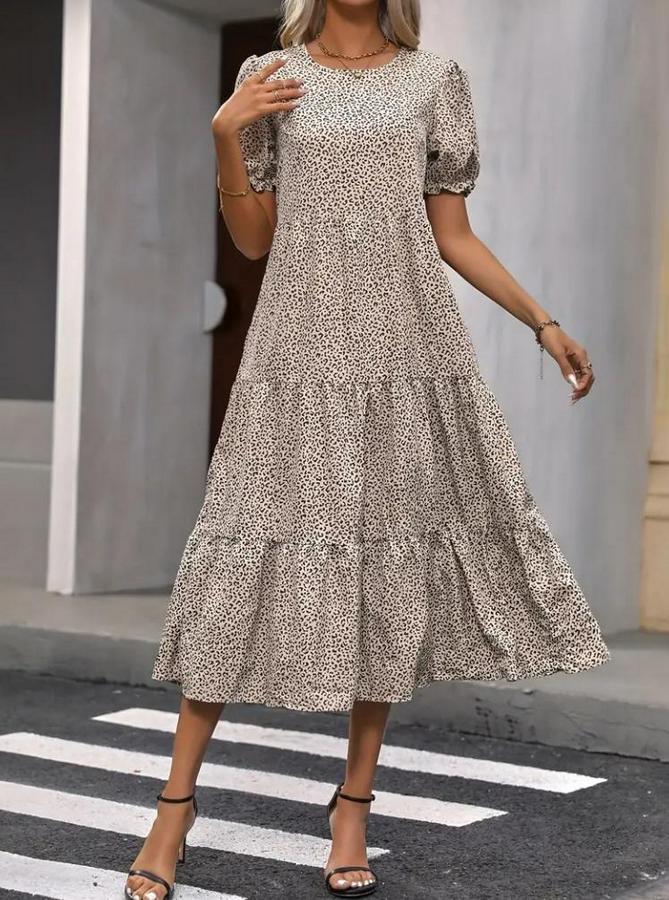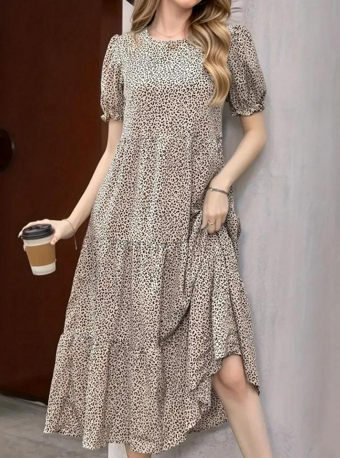 AnasayfaTüm ÜrünlerElbiseMini Leopar Desen Midi Üç Kat Elbise