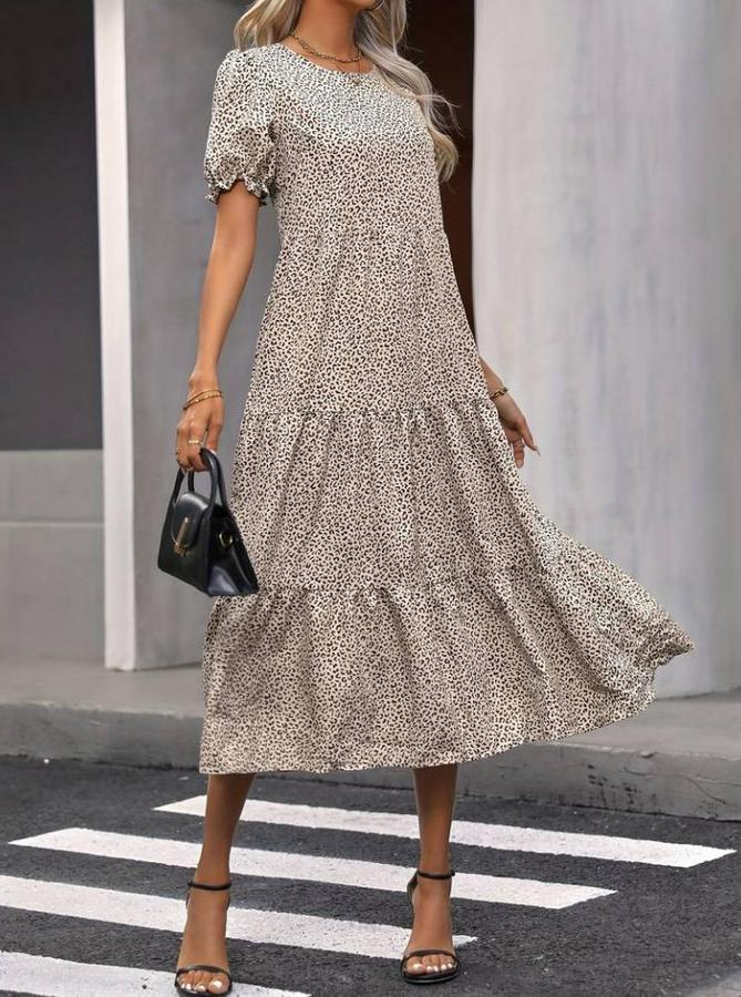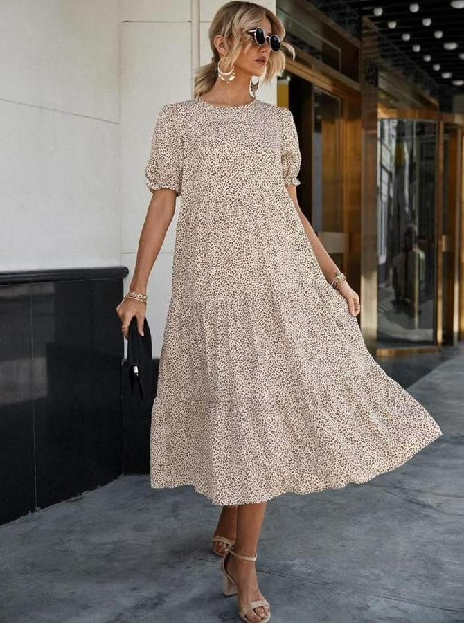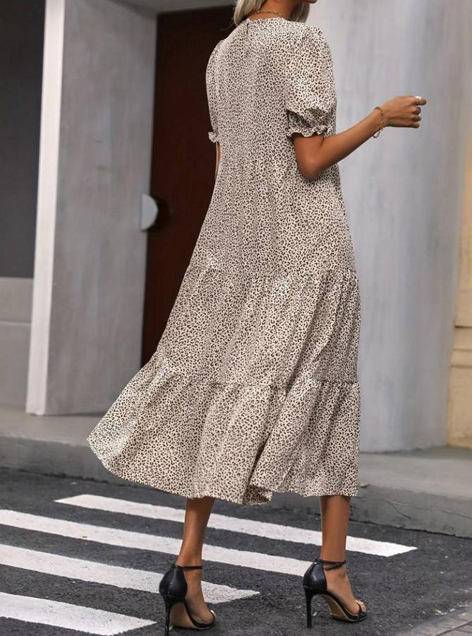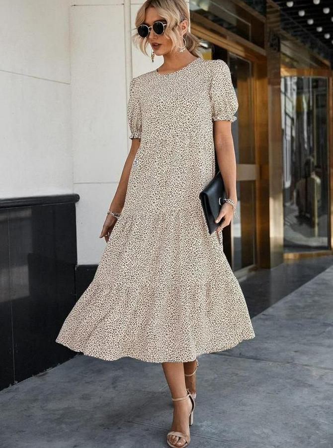 Mini Leopar Desen Midi Üç Kat Elbise