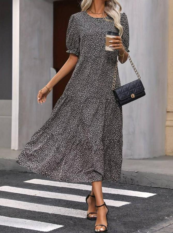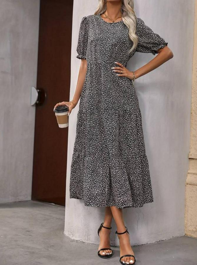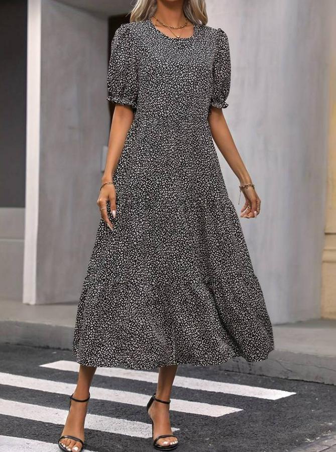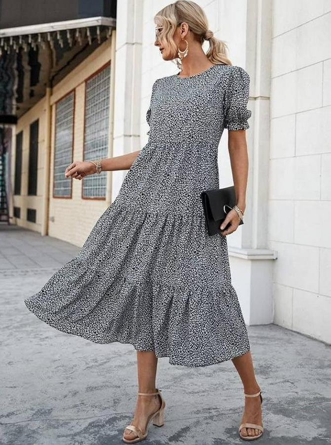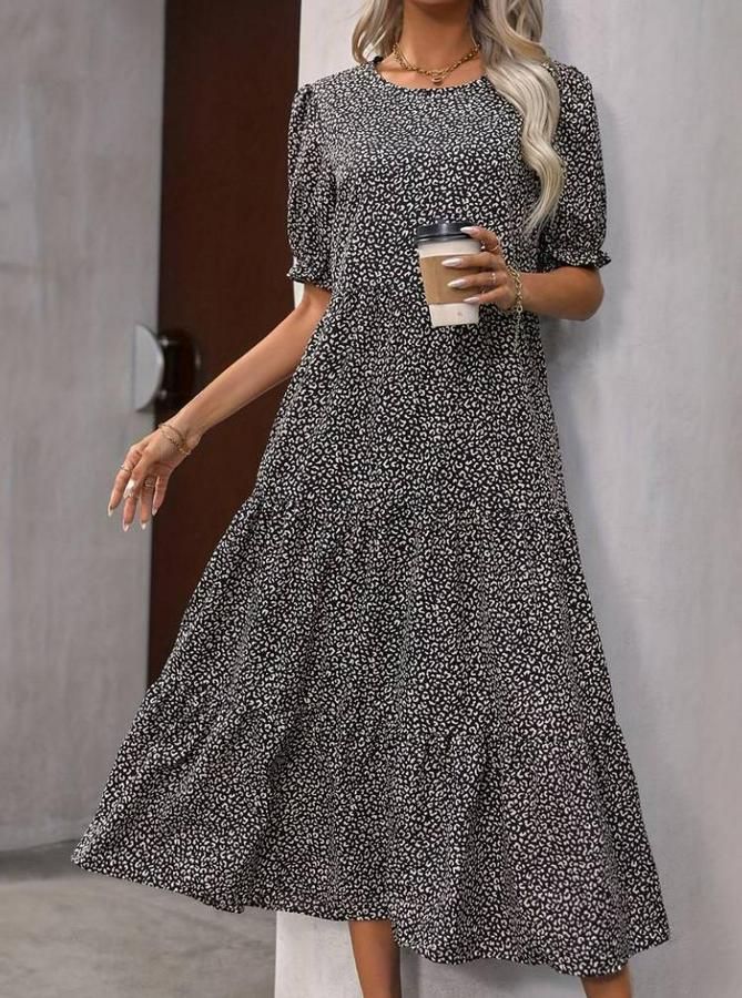 AnasayfaTüm ÜrünlerElbiseMini Leopar Desen Midi Üç Kat Elbise