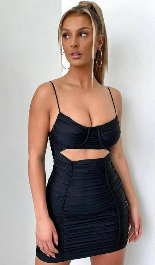 Omuz Askılı Göbek Ve Sırt Dekolteli Gipe Ve Büzgü Detay Fırsat Ürün Mini Elbise
