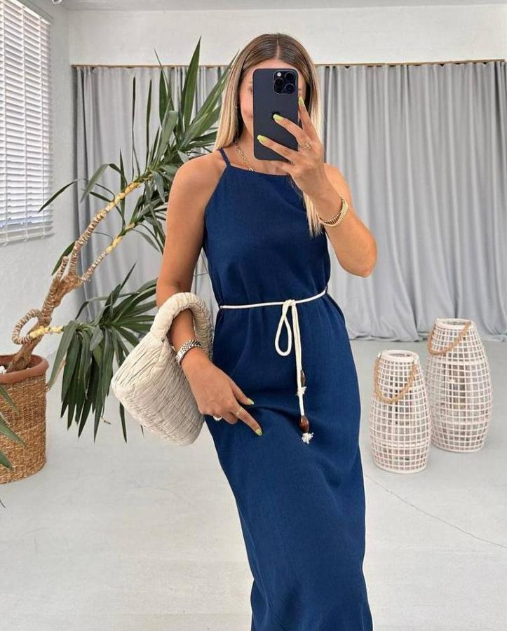 AnasayfaTüm ÜrünlerElbiseOmuz Askılı Kuşak Dahil Elbise
