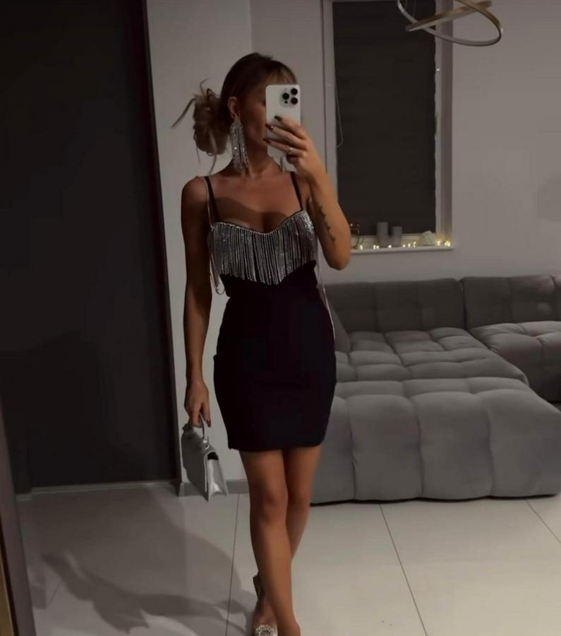 AnasayfaTüm ÜrünlerElbiseOmuz Askılı Taş Detay Mini Elbise