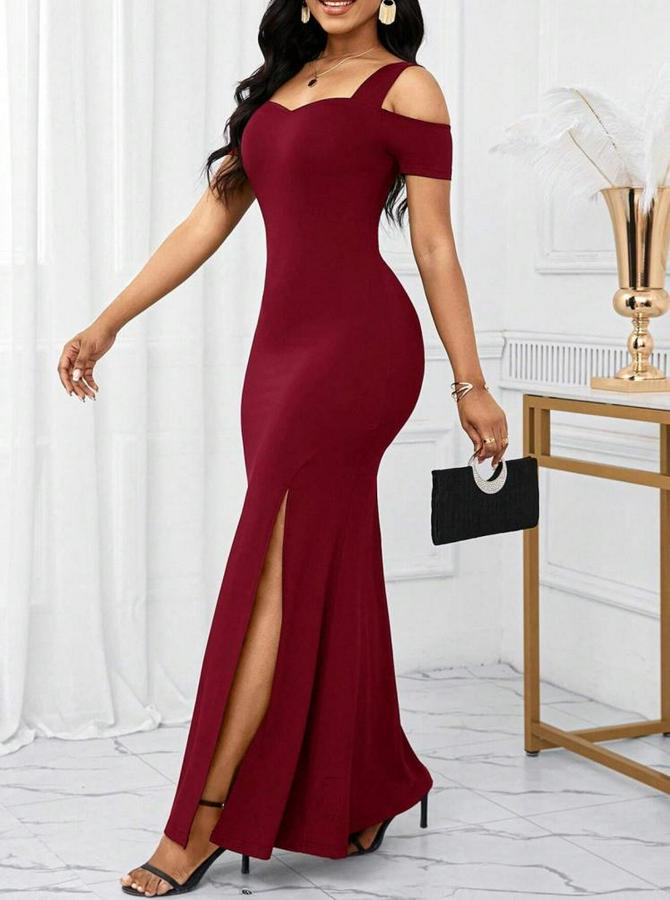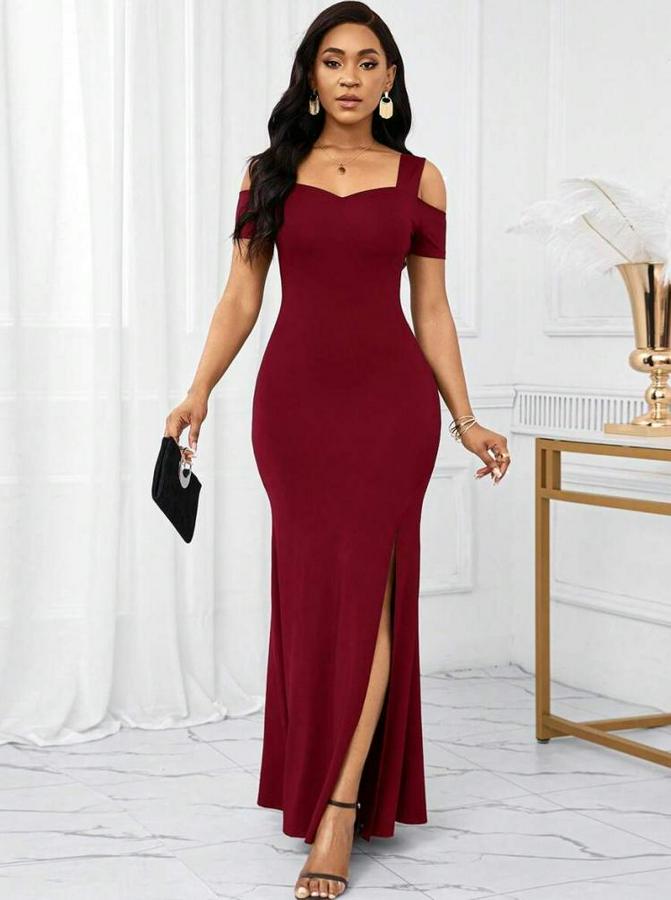 AnasayfaTüm ÜrünlerElbiseOmuzlardan Açık Askılı Yırtmaç Detaylı Uzun Ithal Krep Elbise