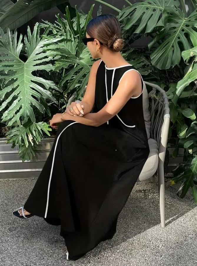 AnasayfaTüm ÜrünlerElbiseOmuzlardan Açık Yaka Ince Şerit Detaylı Uzun Viskon Elbise