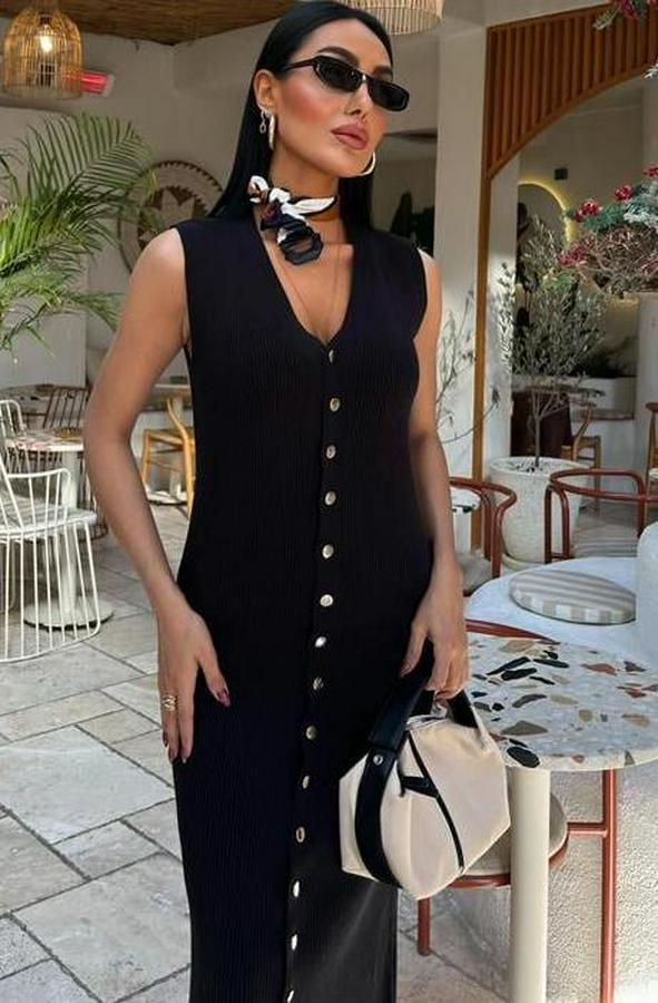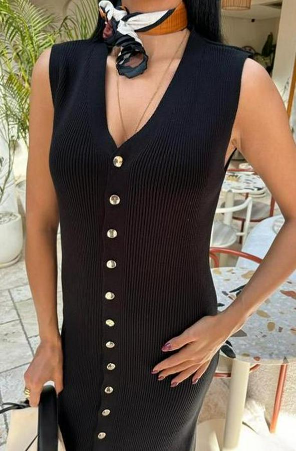 Önü Düğmeli Fitilli Kolsuz Elbise 2832