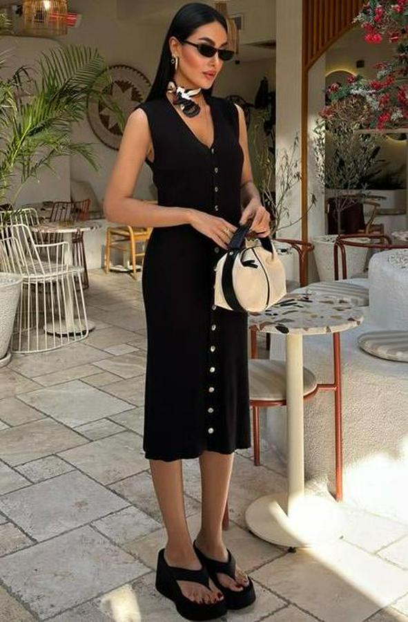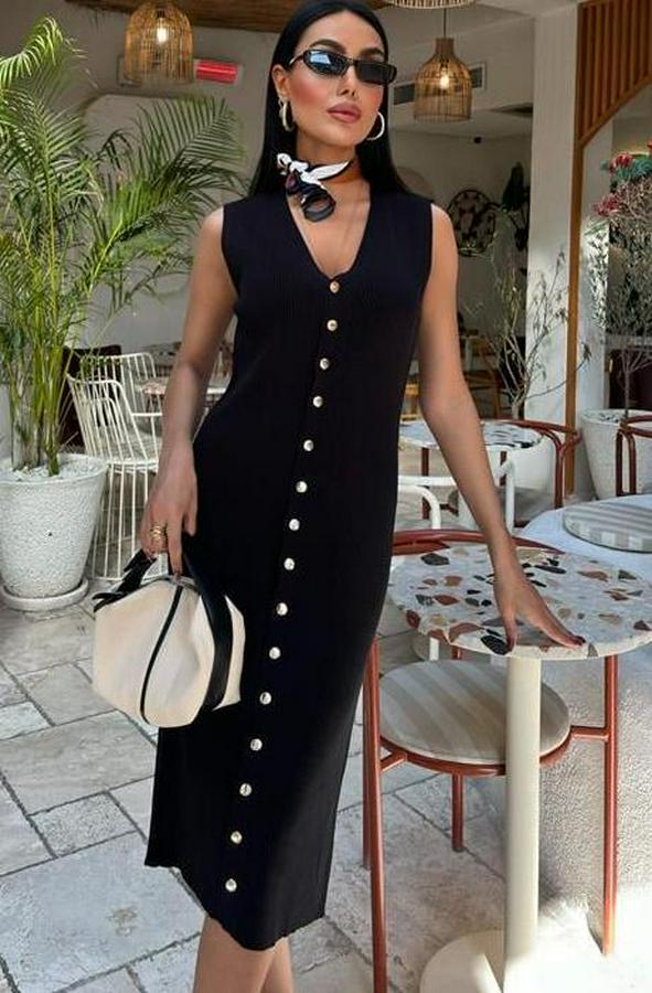 AnasayfaTüm ÜrünlerElbiseÖnü Düğmeli Fitilli Kolsuz Elbise 2832