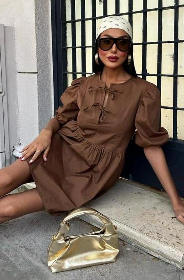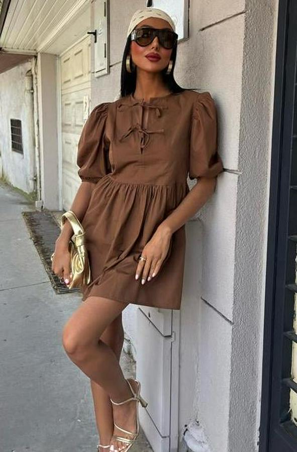 Önü Fiyonk Bağlamalı Ve Balon Kollu Elbise 2893
