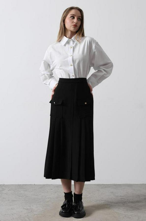 AnasayfaTüm ÜrünlerElbisePileli Kontrast Gömlek Elbise