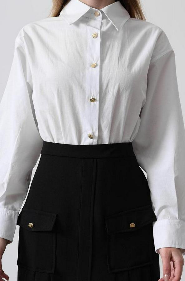 Pileli Kontrast Gömlek Elbise - Beyaz