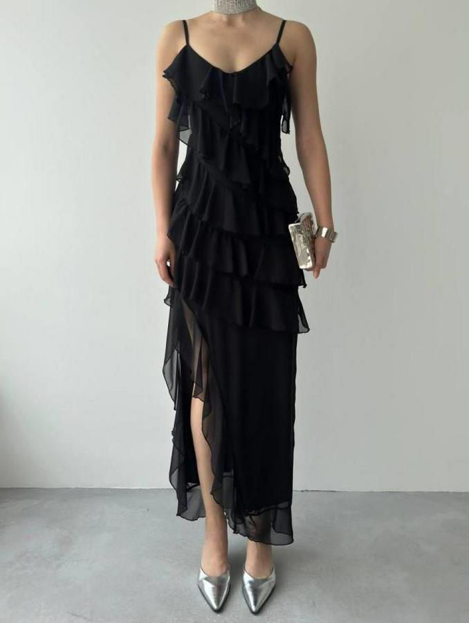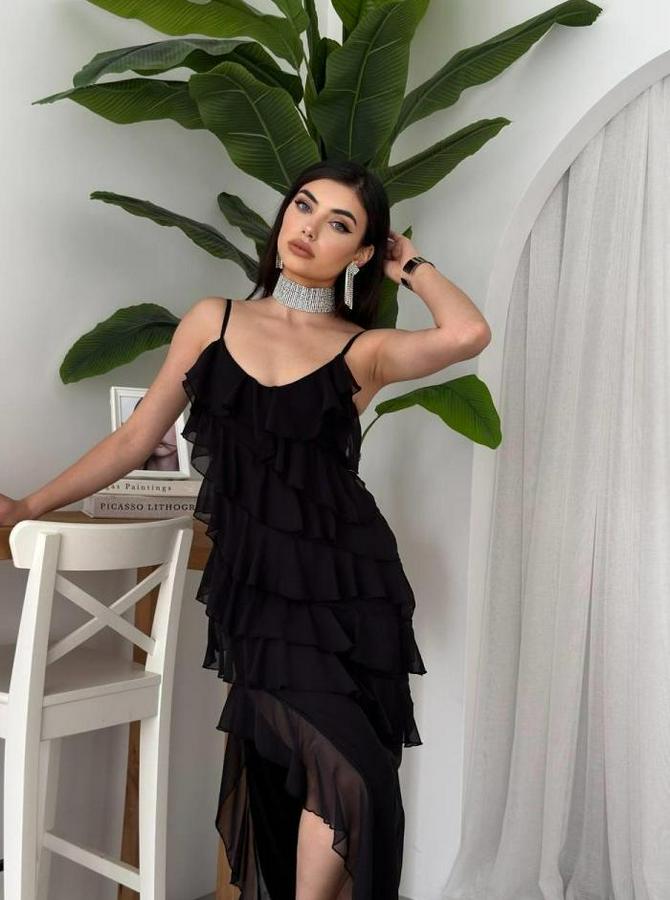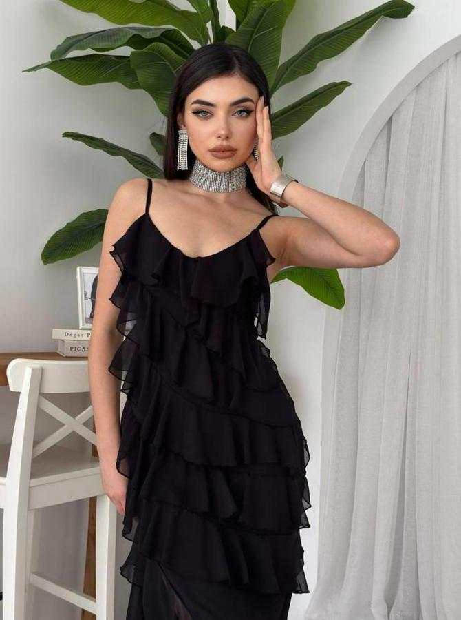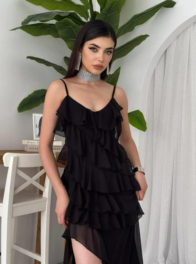 AnasayfaTüm ÜrünlerElbisePles Yırtmaç Detaylı Elbise