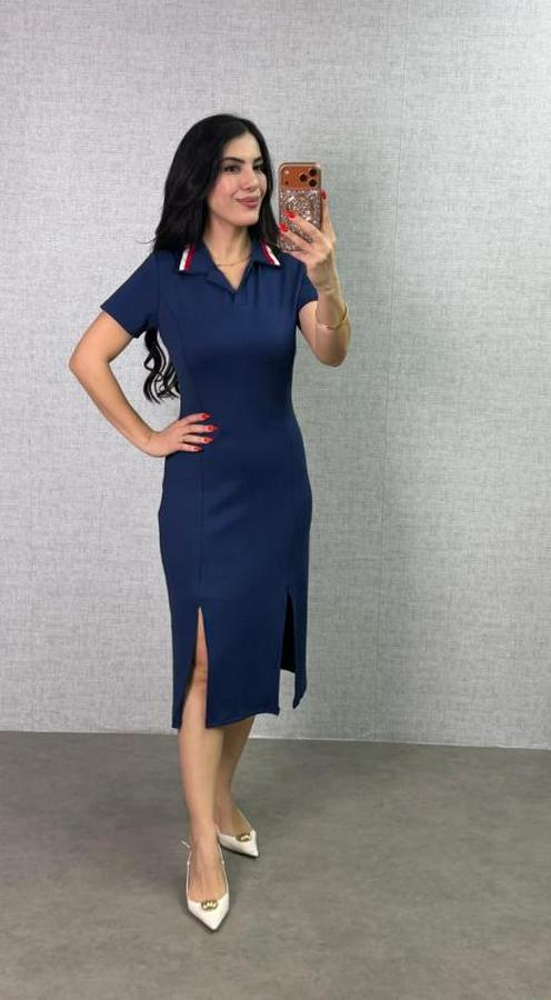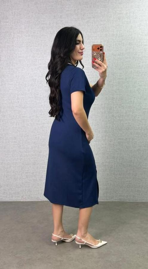 Polo Yaka Çift Yırtmaç Detay Modal Kumaş Midi Boy Elbise