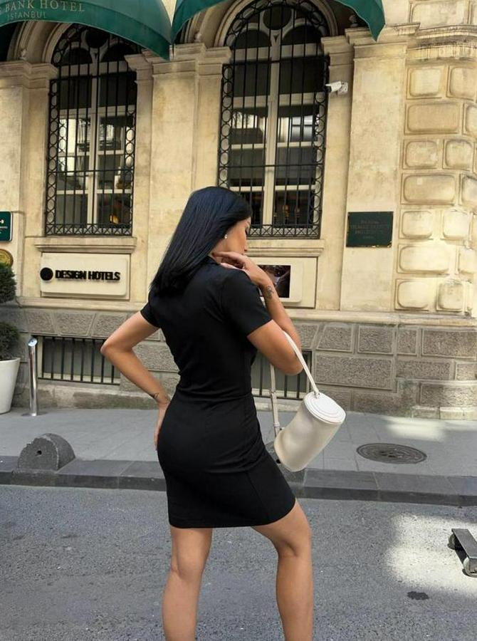 POLO YAKA YAKA KEMER DETAYLI KALEM ELBİSE - Siyah