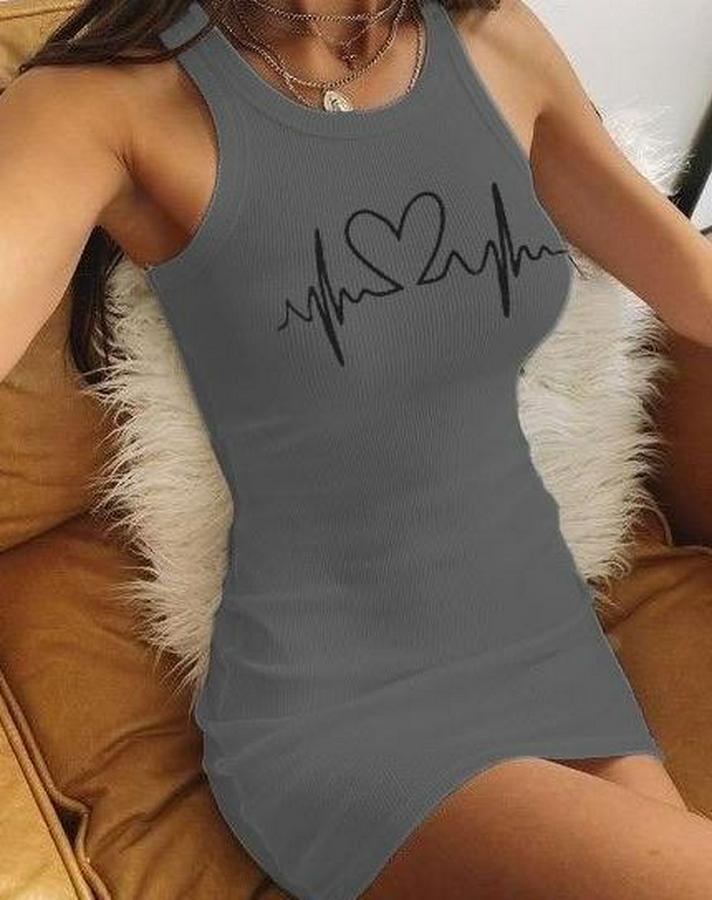 Ritim Kalp Baskılı Sıfır Kol Kaşkorse Elbise
