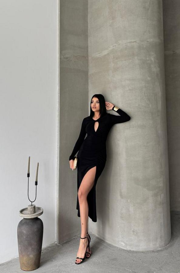 SANDY ELBİSE BÜZGÜ DETAYLI - Siyah