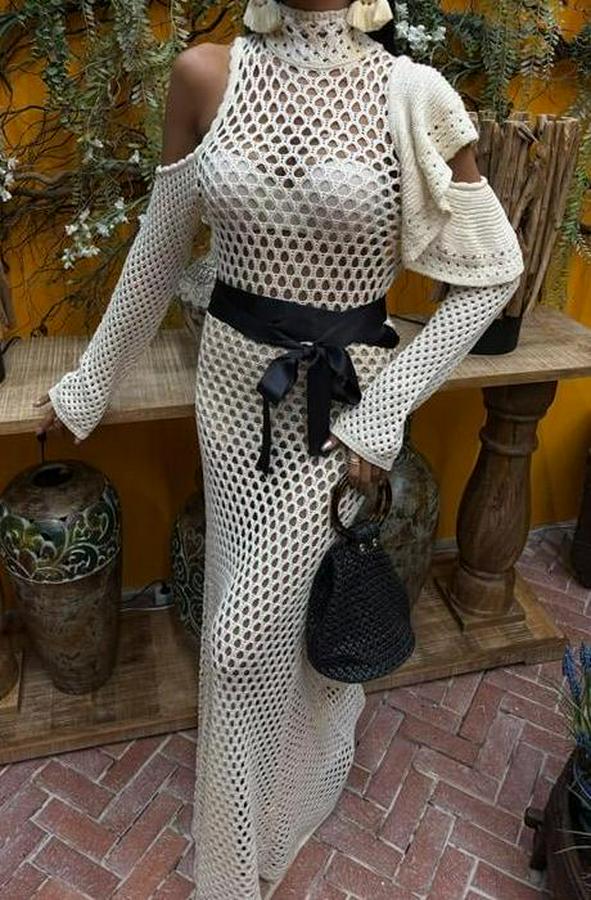 AnasayfaTüm ÜrünlerElbiseSaten Kuşaklı Ajurlu Triko Elbise 2847