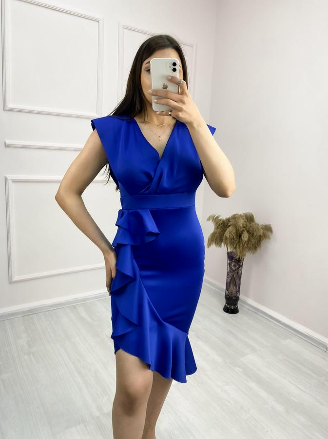 AnasayfaTüm ÜrünlerElbiseScuba Kumaş Önü Fırfırlı Midi Boy Elbise