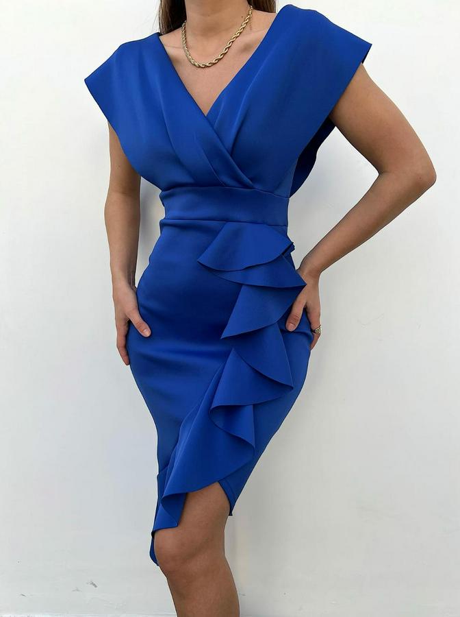 Scuba Kumaş Önü Fırfırlı Midi Boy Elbise