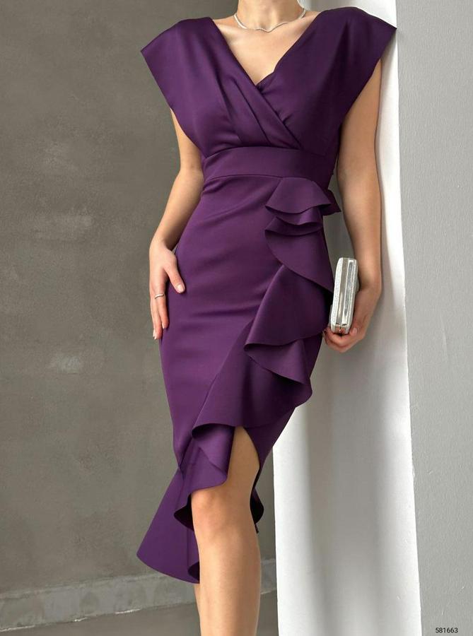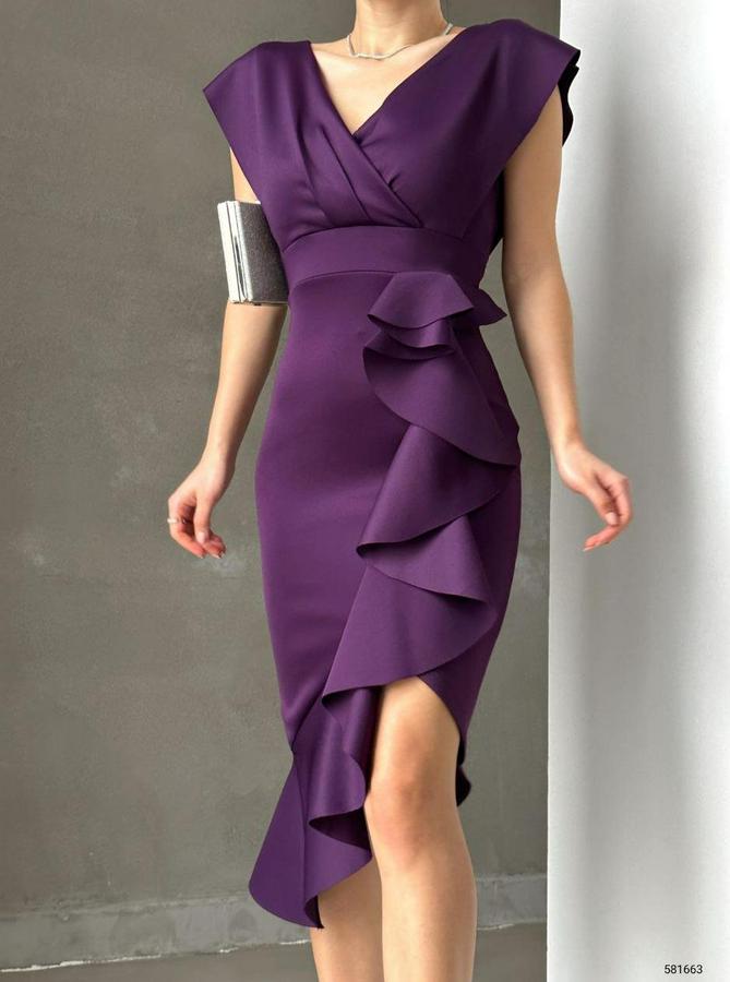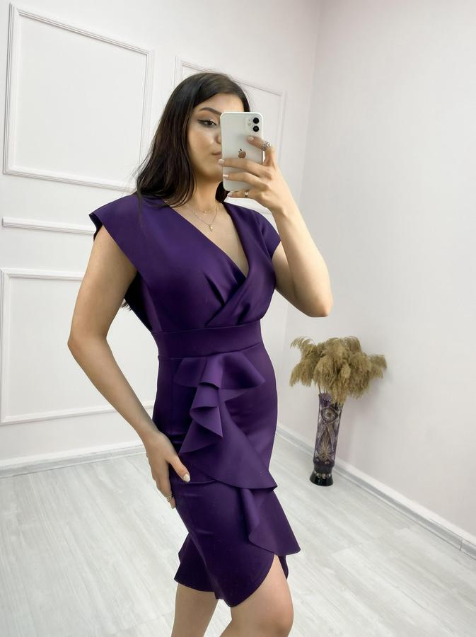 AnasayfaTüm ÜrünlerElbiseScuba Kumaş Önü Fırfırlı Midi Boy Elbise