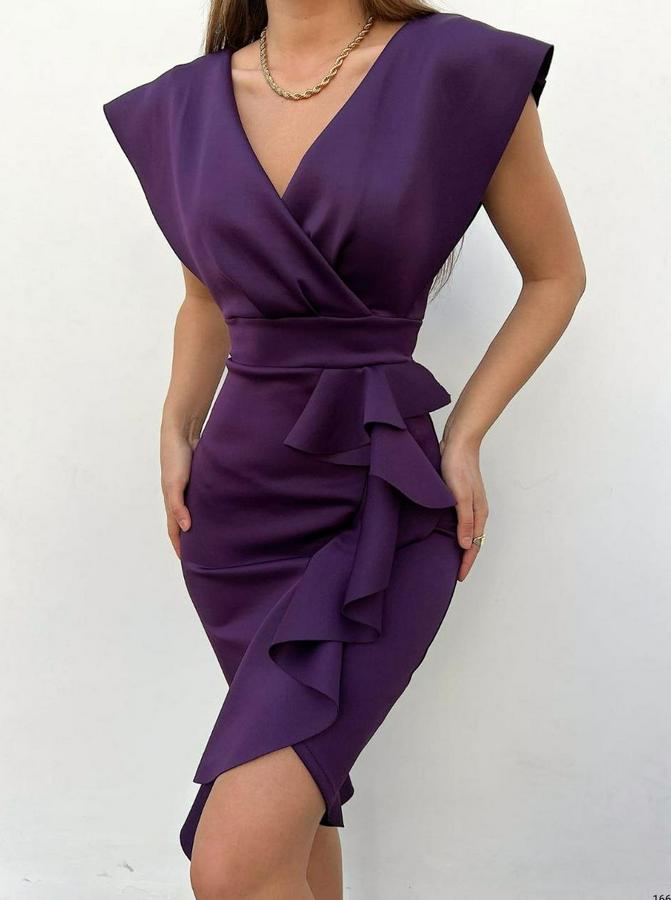 Scuba Kumaş Önü Fırfırlı Midi Boy Elbise