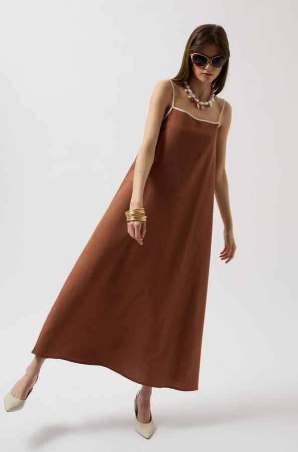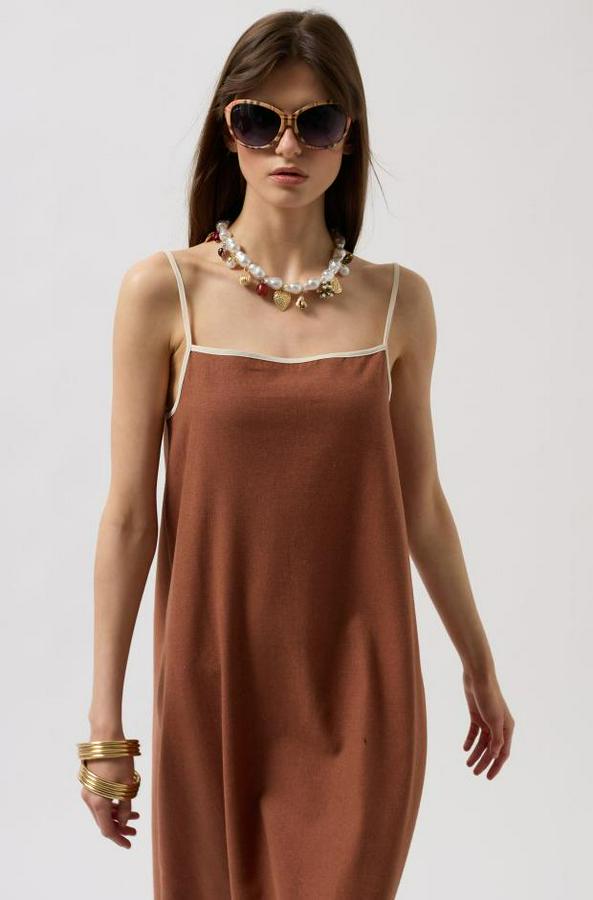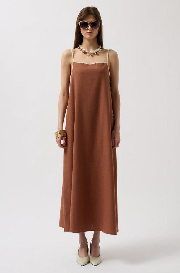AnasayfaTüm ÜrünlerElbiseŞerit Detay Keten Maxi Elbise