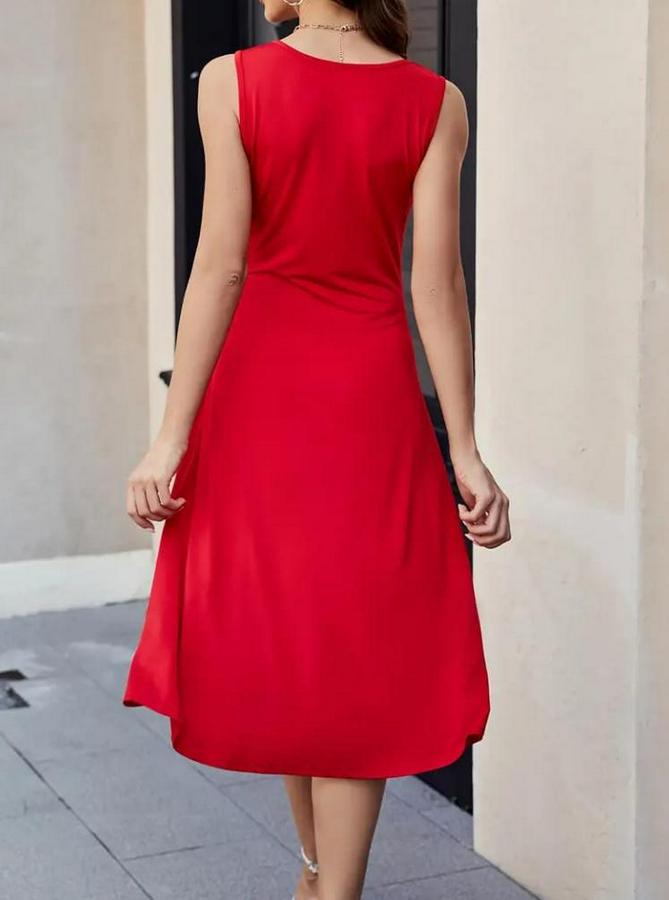AnasayfaTüm ÜrünlerElbiseSıfır Kol Bisiklet Yaka Bel Büzgü Detay Viskon Elbise