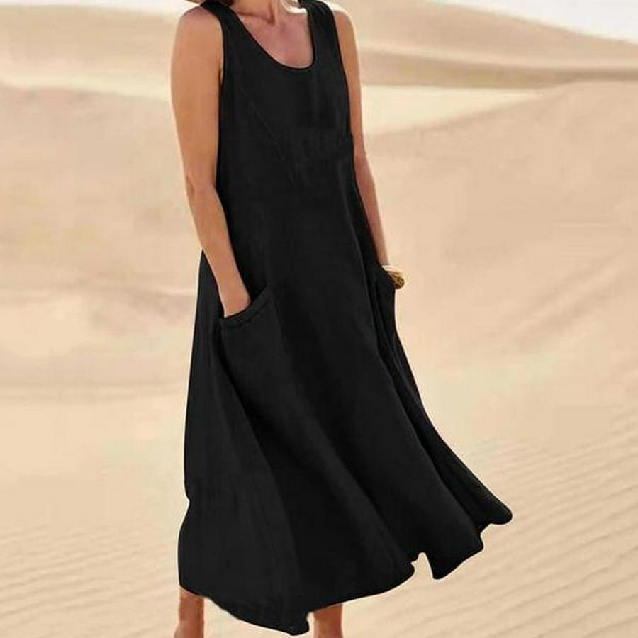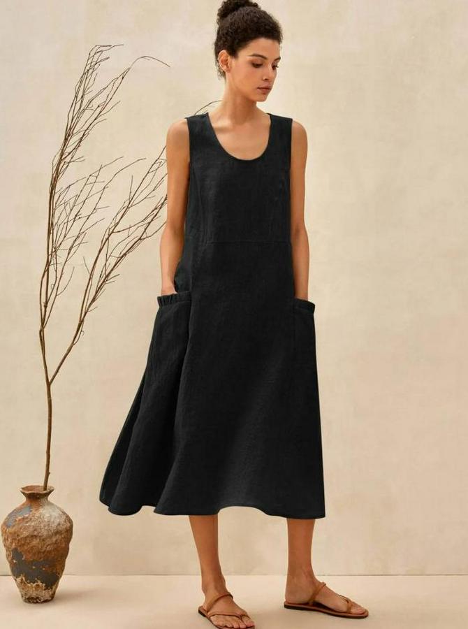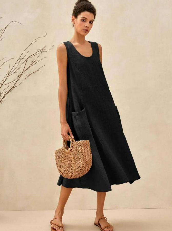 Kadın Sıfır Kol Cep Detay Salaş Aerobin Elbise