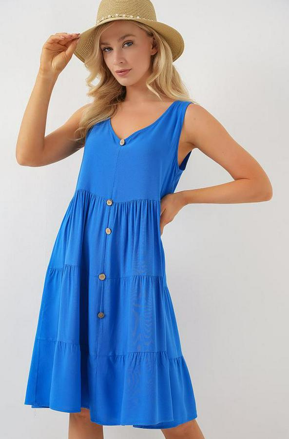 Sıfır Kol Düğmeli Kısa Elbise 2571 - Saks
