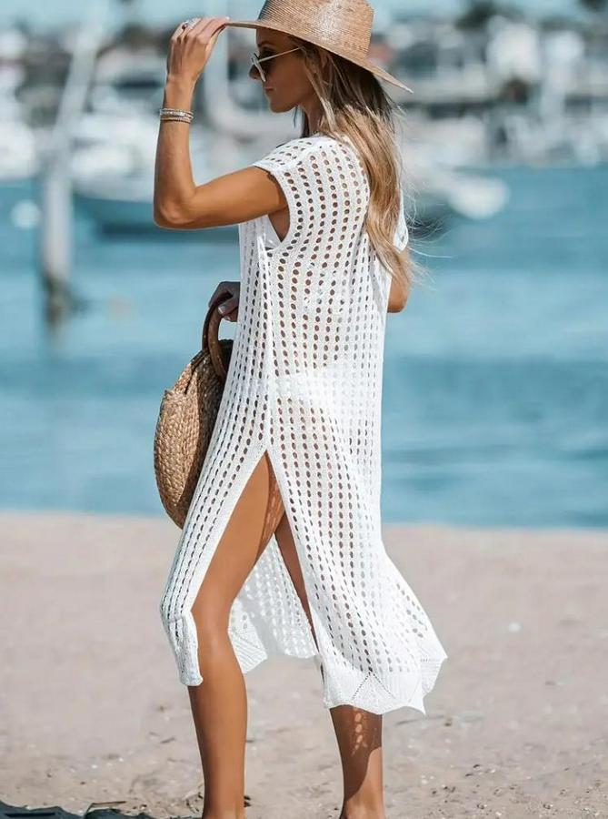 Sıfır Kol V Yaka Yanı Derin Yırtmaçlı Midi Boy Triko Elbise