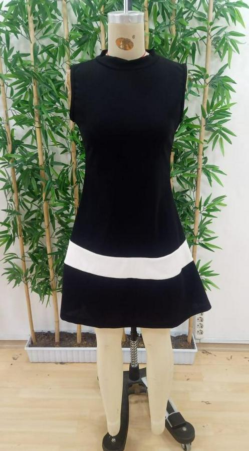 Kadın Sıfır Kol Yarı Balıkçı Yaka şerit Detaylı Ithal Krep Elbise