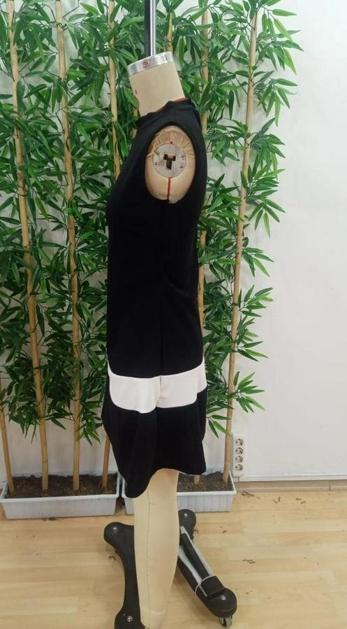 AnasayfaTüm ÜrünlerElbiseSıfır Kol Yarı Balıkçı Yaka Şerit Detaylı Ithal Krep Elbise