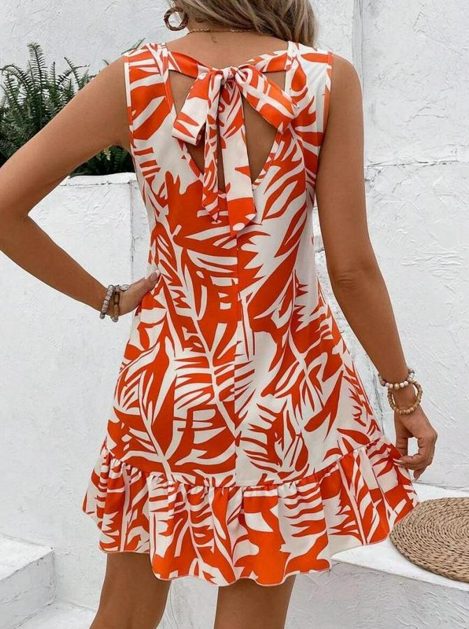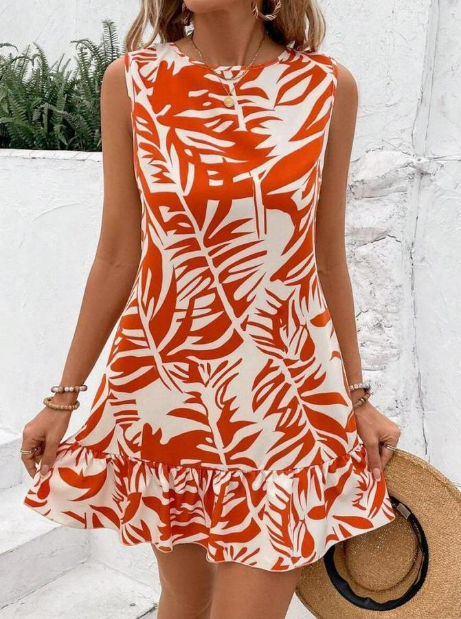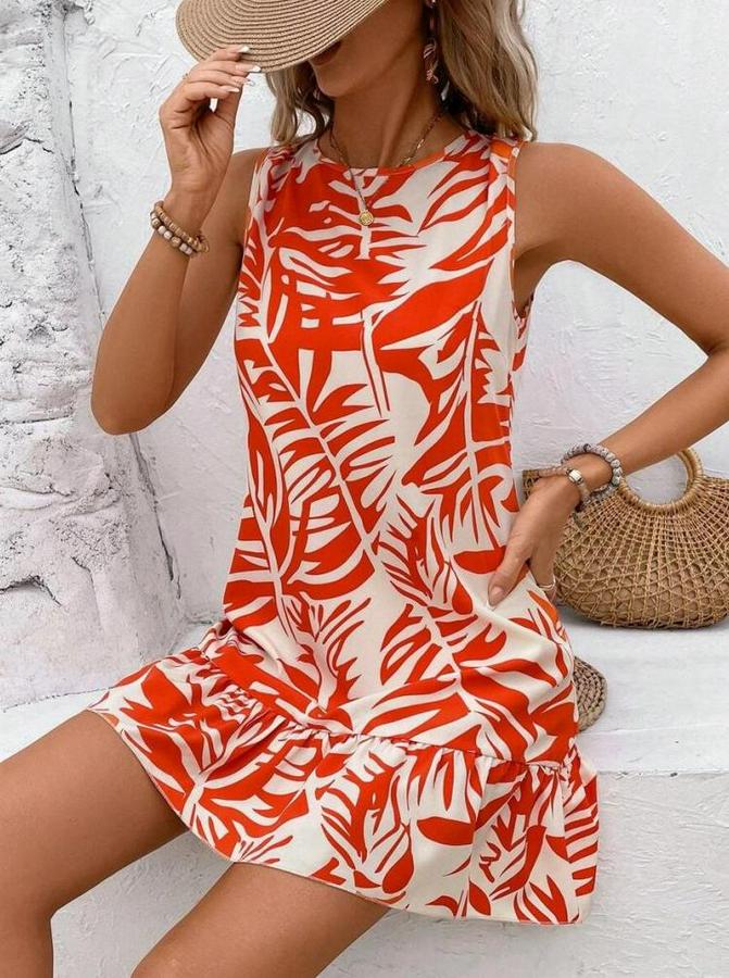 AnasayfaTüm ÜrünlerElbiseSıfır Kollu Bisiklet Yakalı Fırfırlı Desenli Sofya Elbise
