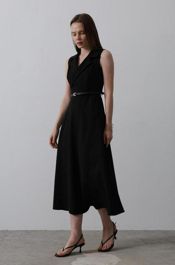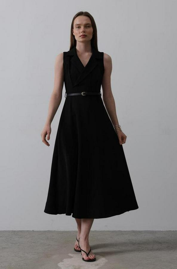 Sıfır Kollu Kemer Detaylı Elbise - Siyah