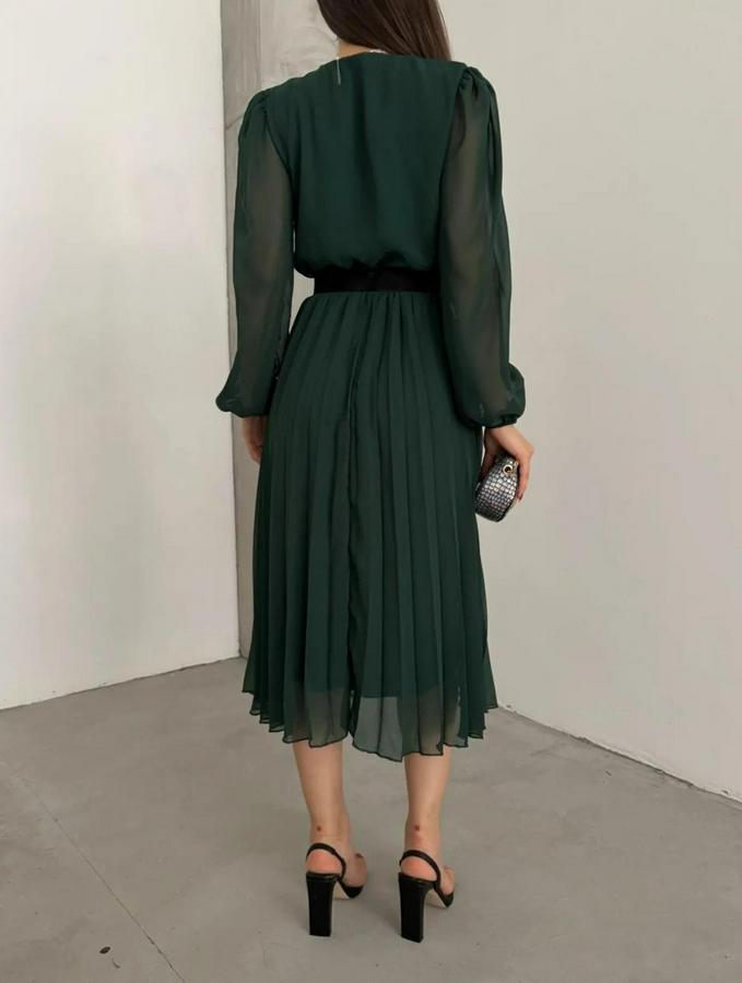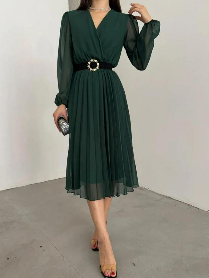 Kadın şifon Kumaş Astalı Kloş Kesim Kruvaze Yaka Midi Boy Elbise