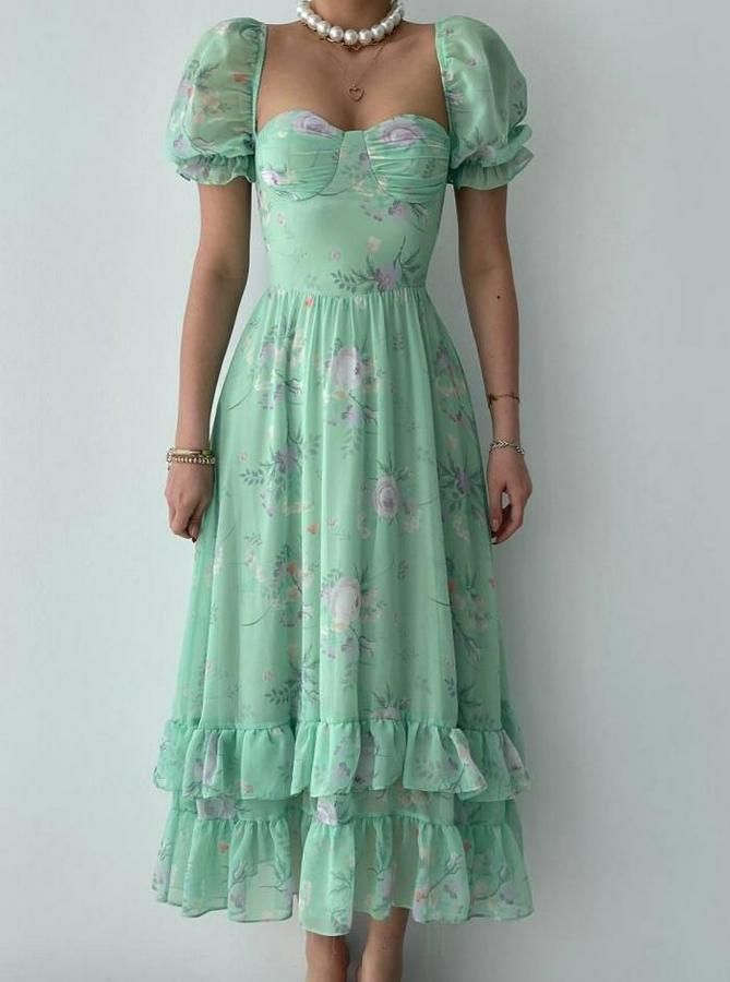 Şifon Kumaş Dijital Desen Baskili Elbise