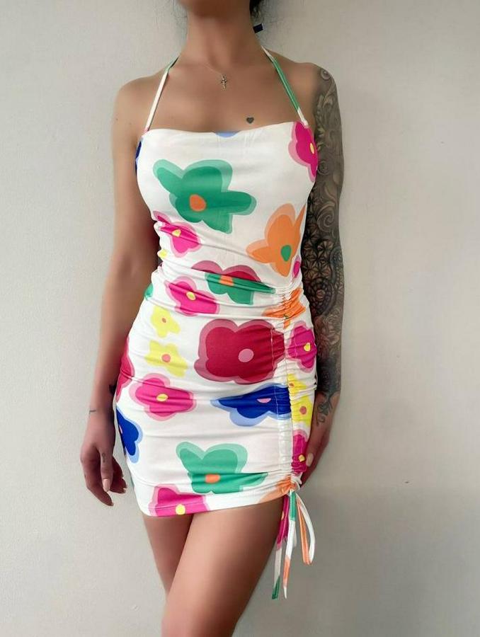 AnasayfaTüm ÜrünlerElbiseSırt Dekolteli Asansör Büzgü Detay Mini Elbise