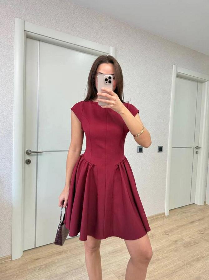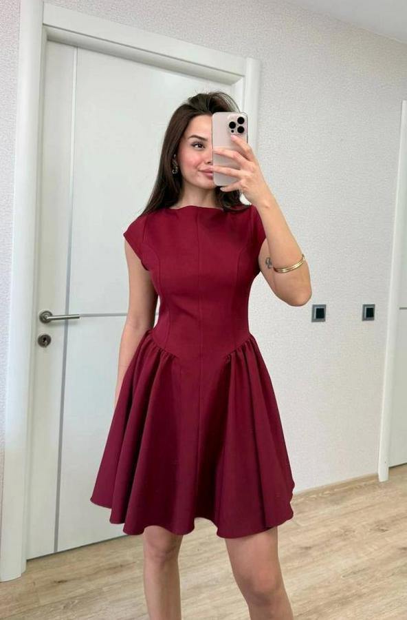 Sırt Dekolteli Çan Detaylı Mini Elbise - Bordo