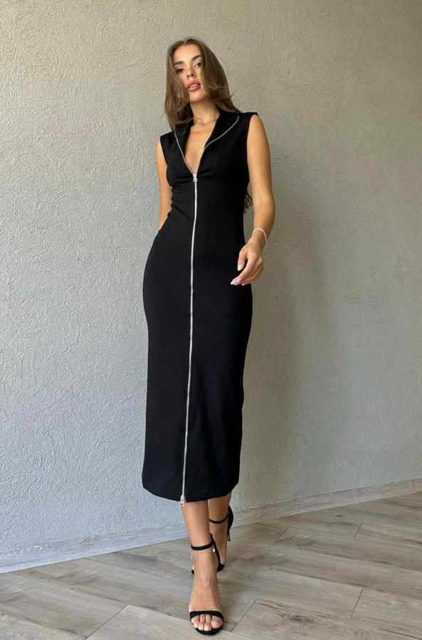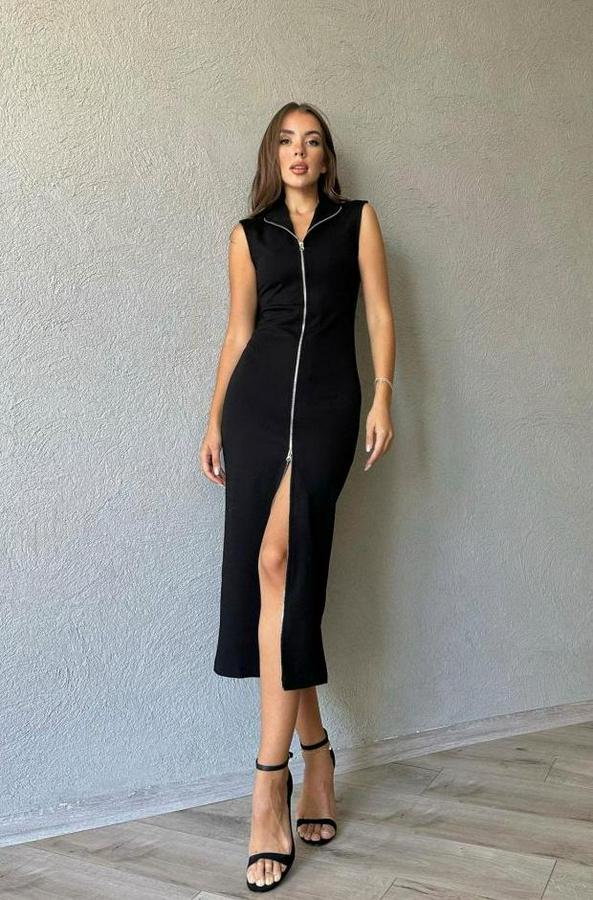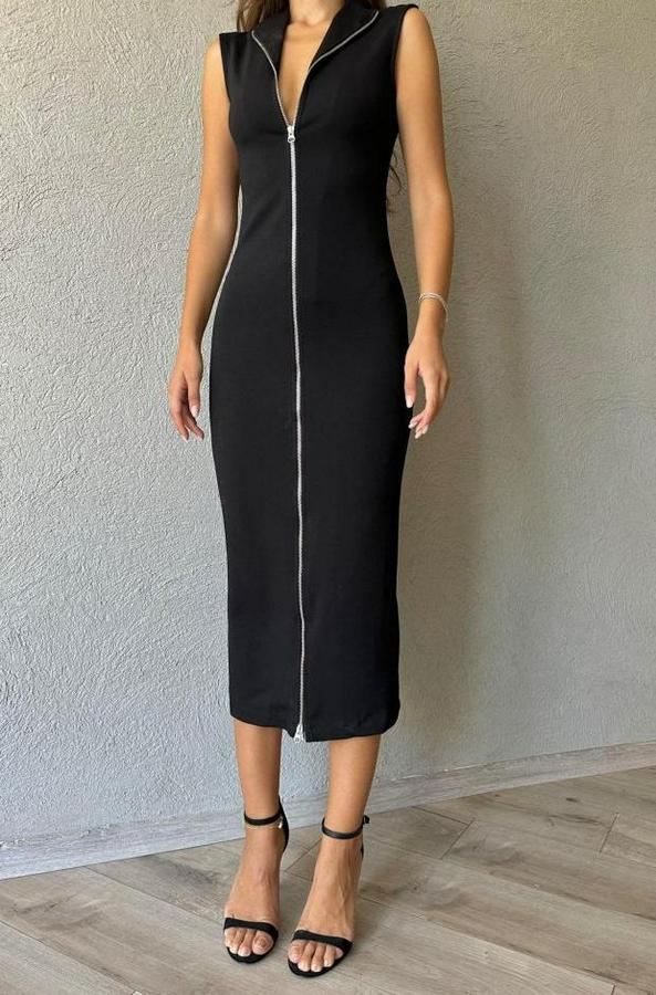 AnasayfaTüm ÜrünlerElbiseSiyah Boydan Fermuarlı Sıfır Kol Elbise